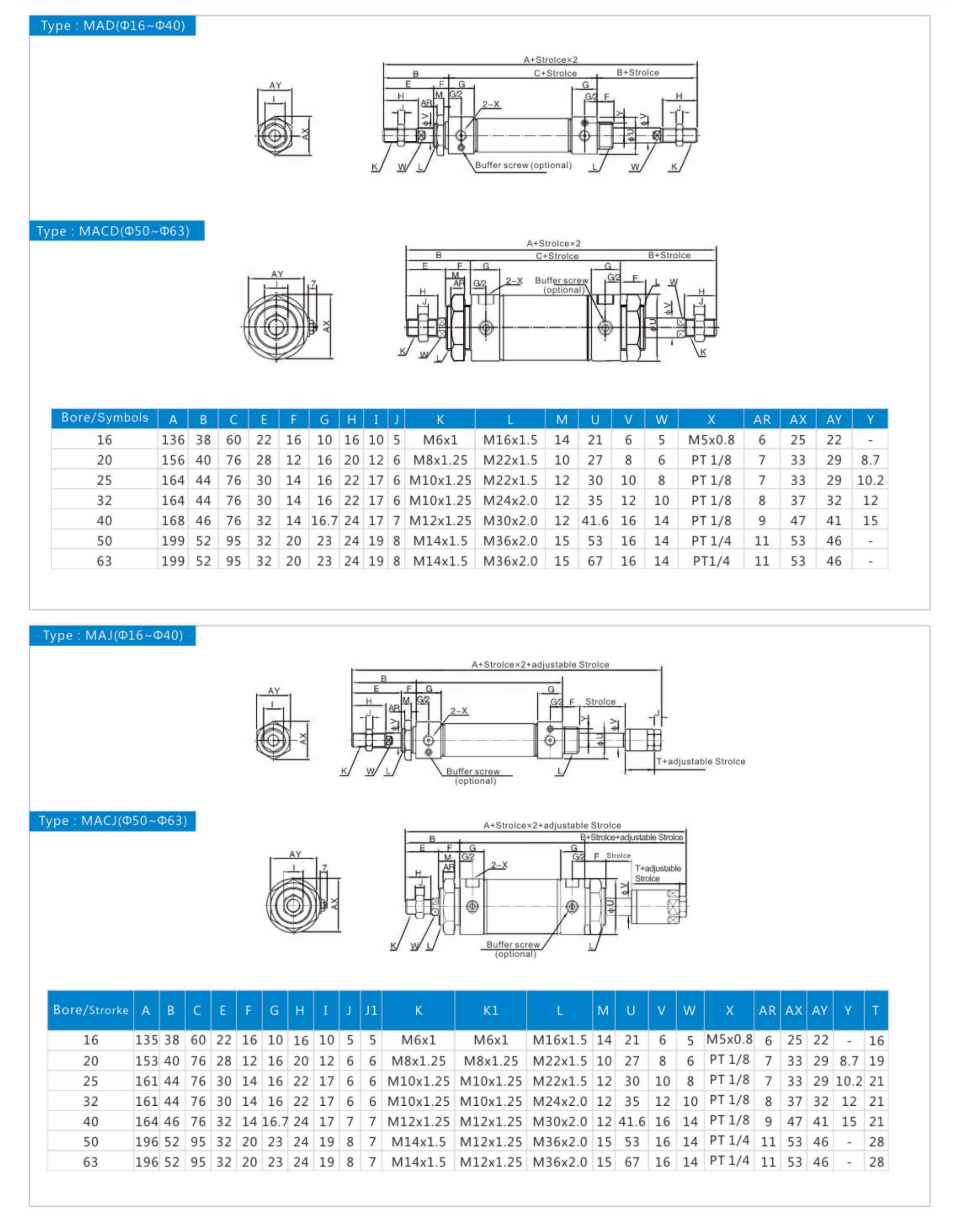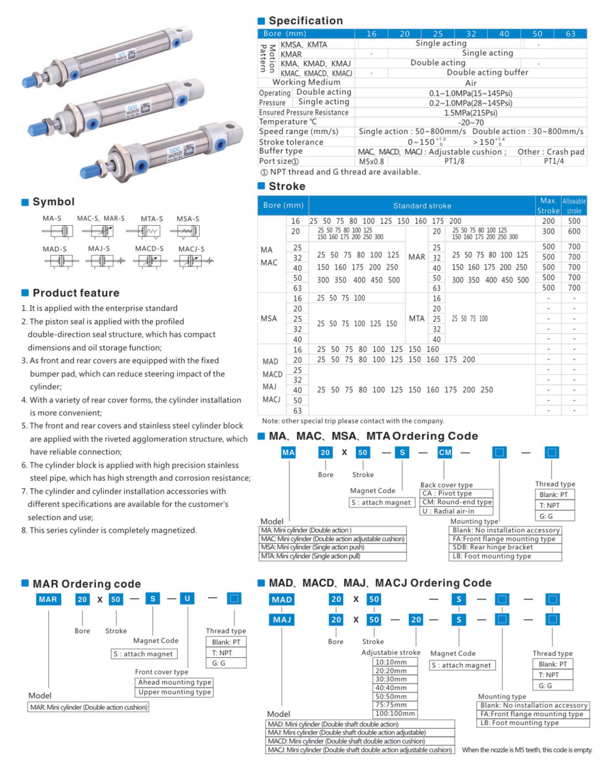 MA Series Stainless Steel Mini Cylinder