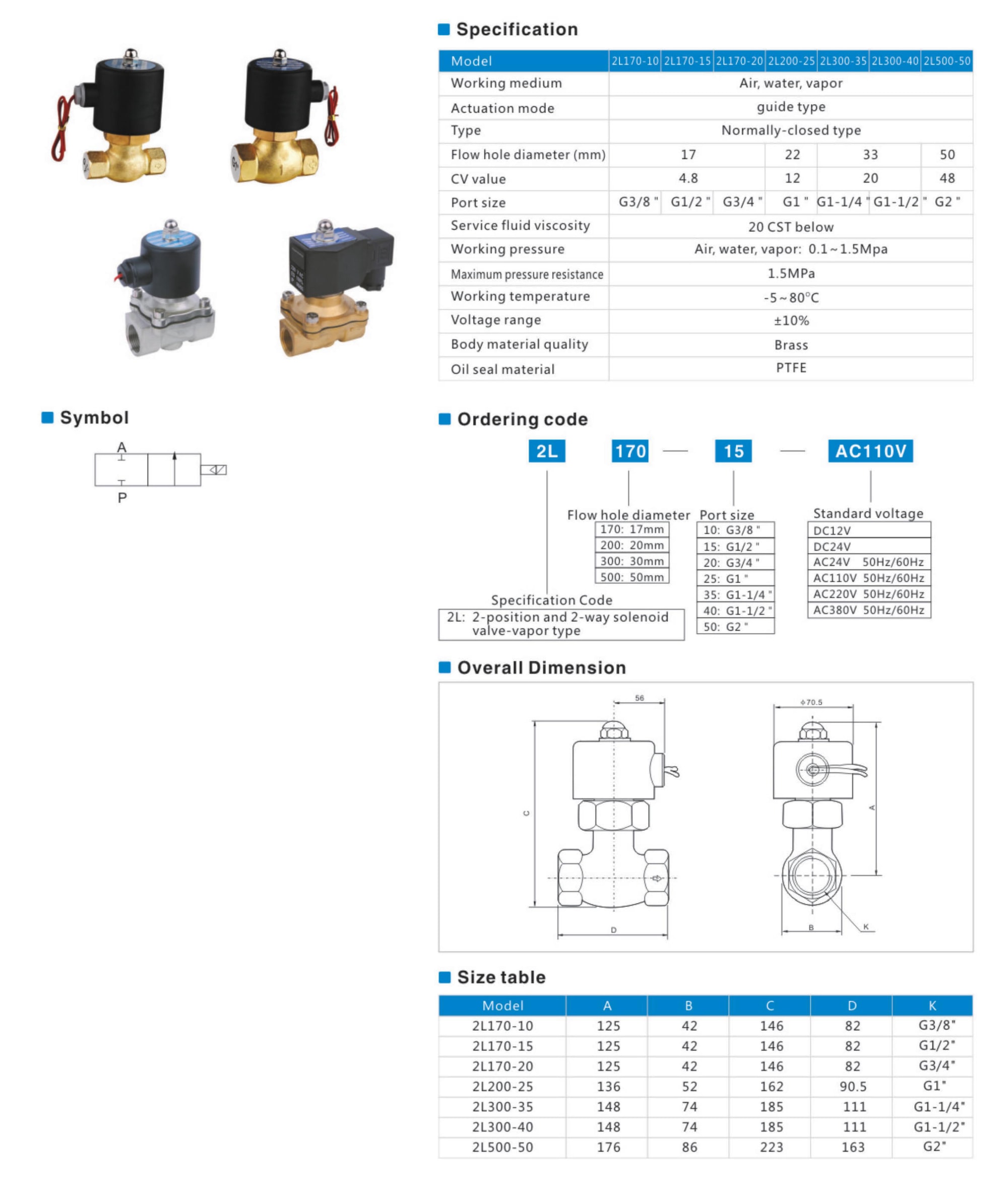 Two-position and two-way direct acting type solenoid valve2L series
