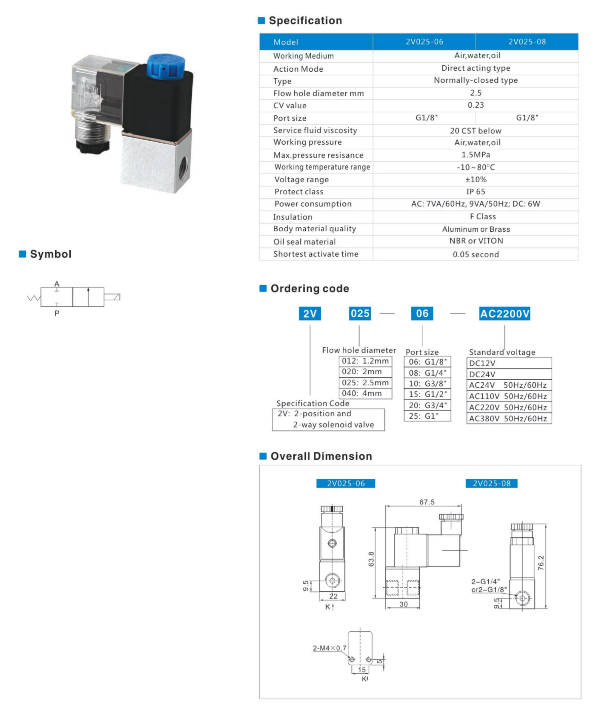Two-position and two-way solenoid valve2V series