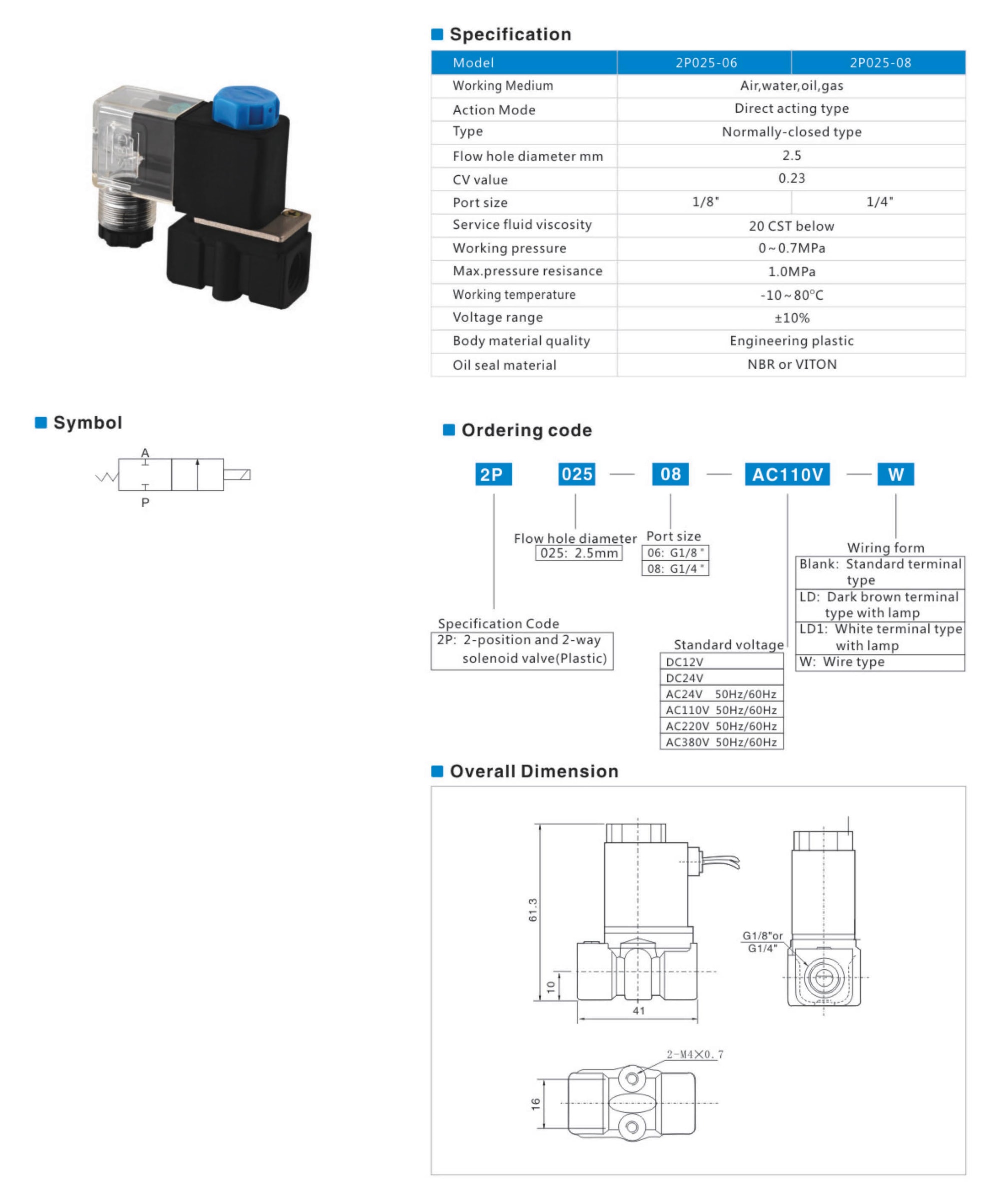 Two-position and two-way solenoid valve2P series